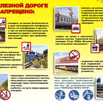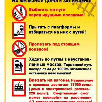 - старайтесь не находиться в районе железнодорожных путей, вокзалов, платформ без сопровождения взрослых!