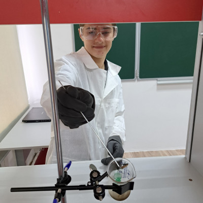 В центре образования естественно-научной направленности "Точка роста" было проведено практическое занятие "Скорость химических реакций. Катализ" учащиеся 9 класса окисляли стальные скрепки в растворе серной кислоты при помощи нагревания содержимого раствора на спиртовке.