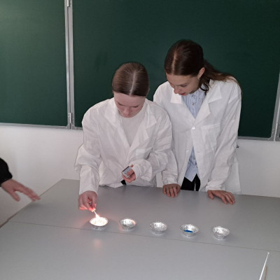 В Центре " Точки роста" проведена внеурочная деятельность <<Удивительная химия>> ,среди учащихся 8 класса. Учащиеся провели опыт <<Разноцветное пламя>>, суть данного опыта заключается в том, что ребята узнали за счет чего получается разноцветный огонь. Какой метал придает ему тот или иной окрас.