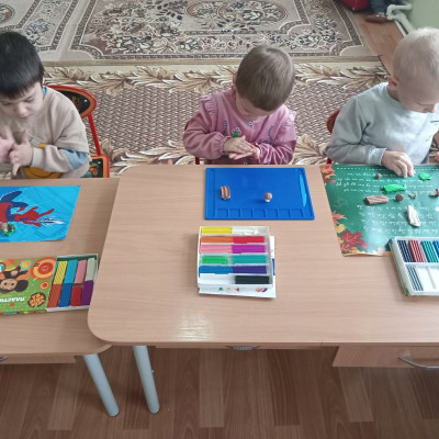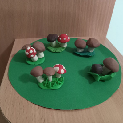 На занятии по лепке ребята посмотрели познавательный мультфильм про грибы, познакомились с некоторыми съедобными и несъедобными грибами.В конце занятия вылепили "Грибную полянку".