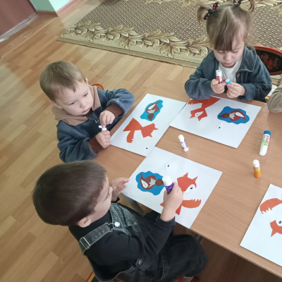 Отправившись в увлекательное путешествие по сказкам писателя, дети познакомились с его волшебными и добрыми произведениями, в которых оживают игрушки, а животные и цветы умеют разговаривать. Особенно понравились сказки «Про храброго зайца — длинные уши, косые глаза, короткий хвост» и «Медведко». Но настоящей любимицей стала сказка «Серая шейка». После просмотра ребята решили поработать иллюстраторами и выполнили аппликацию "Серая шейка и лисица".