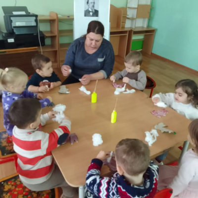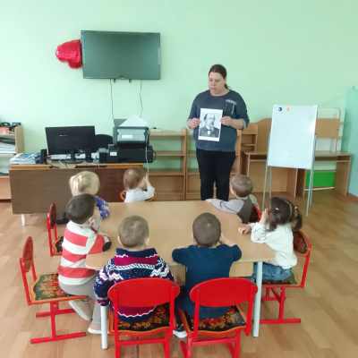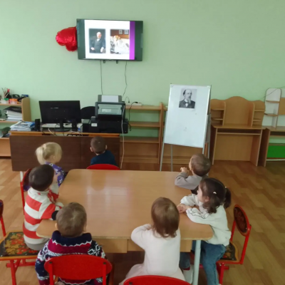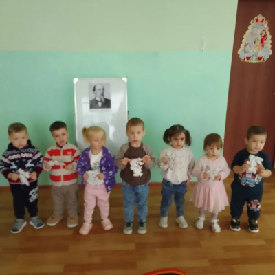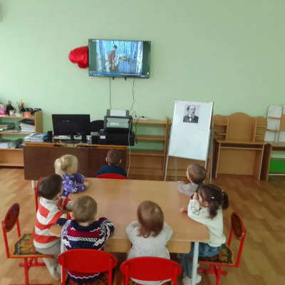 В младшей группе прошло мероприятие ко дню рождения поэта. Ребята познакомились с русским классиком и его произведениями. Воспитатель показала детям презентацию, в которой рассказала о жизни писателя, познакомила с произведением «Дедушка Мазай и зайцы». После просмотра мультфильма воспитанники выполнили аппликацию из ваты "Зайчик".