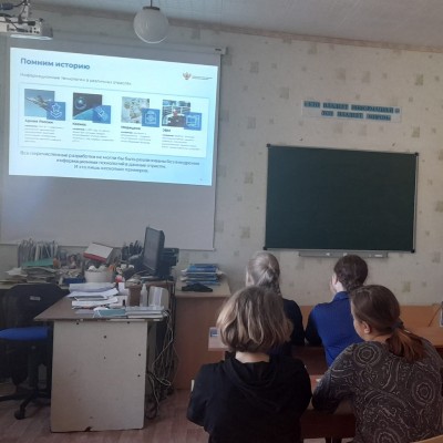 «Информационные технологии. Вклад России в сферу информационных технологий. Отечественные разработки», направленный на формирование у обучающихся активной жизненной позиции, информирование о высоком уровне информационных технологий в России и перспективах развития. На уроке ученики просмотрели видео ролик «ФГИС Моя школа» и презентацию «Информационные технологии», в ходе чего узнали: какие цифровые сервисы используются чаще всего, какие из них являются отечественными, историю разработки в области информационных технологий, сделанных в нашей стране, какие российские ученые в сфере информатики, кибернетики, механики и других технических направлений, обеспечили вклад в развитиеинформационных технологий.
