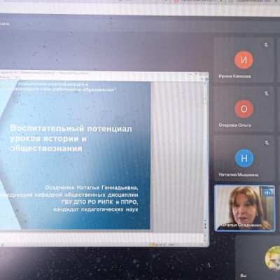 9 марта 2023 года педагоги нашей школы приняли участие в вебинаре "Воспитательный потенциал уроков истории и обществознания". Организованным специалистами кафедры общественных дисциплин ГБУ ДПО РО РИПК ППРО г.Ростова -на-Дону (на платформе Google Meet).