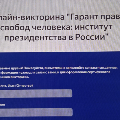 В рамках просветительского проекта Уполномоченного по правам человека в Российской федерации «Президент Российской Федерации – гарант прав и свобод человека и гражданина» дан старт онлайн-викторине «Гарант прав и свобод человека: институт президентства в России».