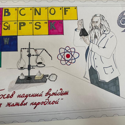 С целью формирования популяризация химической науки и искусства, пропаганды креативности и свободы мышления,создания необходимых условий для поддержки одаренных детей, проводится с 19 января 2024 года по 15 февраля 2024 года дистанционный муниципальный конкурс творческих работ обучающихся 8-11 классов «Химия в марках»,посвященный празднованию 190-летия со дня рождения Д. И. Менделеева. Нашу школу представляют работы учащихся 9 класса- Денисович Алины и 8 класса- Охотниковой Евгении.