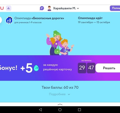 Олимпиада "Безопасные дороги" проводится при поддержке нацпроекта «Безопасные качественные дороги».Повышает осведомлённость школьников и их родителей в вопросах безопасности дорожного движения.Состоит из интерактивных заданий и проверяет, насколько хорошо ученики младшей и средней школы знают правила дорожного движения.Объясняет, как вести себя на дороге в качестве пешехода, на велосипеде, самокате и не только.Предваряется тренировочными заданиями, которые помогают лучше запомнить правила.