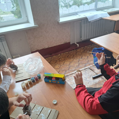На внеурочной деятельности " Мое творчество " ученики 4 и 3 класса, МБОУ Ковриновской СОШ. Были вовлечены в индивидульную работу, по изготовлению " Елочных игрушек - снеговиков".