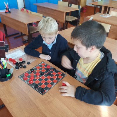 На внеурочной деятельности "Шахматы" под руководством Кунах И.В. ребята продолжают отрабатывать навыки игры в шахматы... и не только.