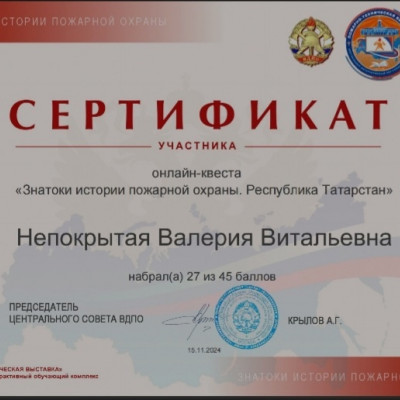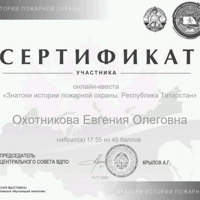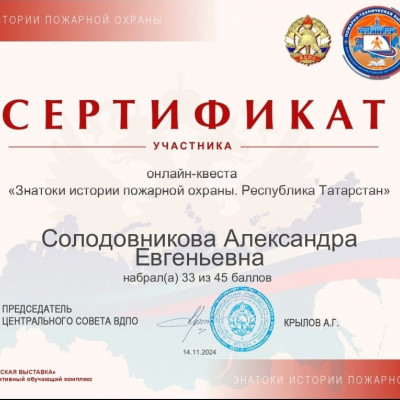 Онлайн-квест «Знатоки истории пожарной охраны. Республика Татарстан» проходил на портале вдпо.рф с 13–17 ноября 2024 года. В рамках конкурса участники смогли проверить себя в знаниях правил пожарной безопасности, истории пожарной охраны и добровольчества России и Республики Татарстан.