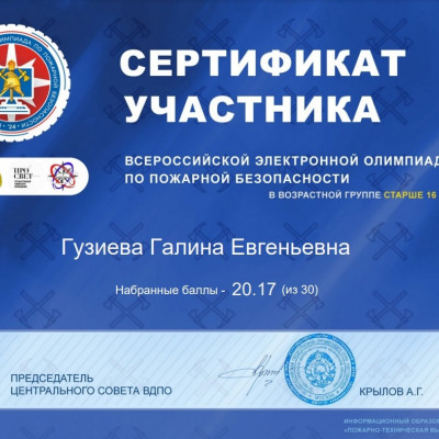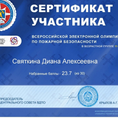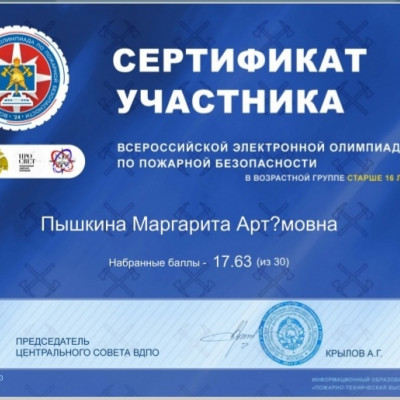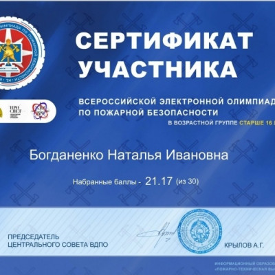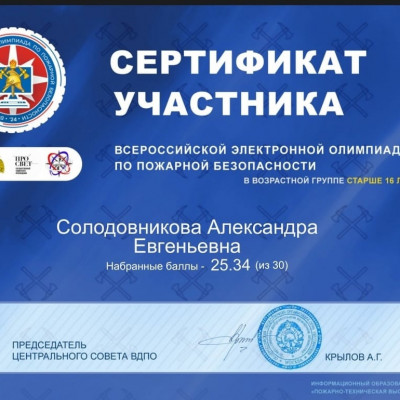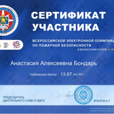 Обучающиеся школы средней возрастной группы 11-15 лет приняли участие во Всероссийской электронной олимпиаде по пожарной безопасности, которая проходит с 3 по 15 октября. Олимпиада проводится с целью повышения культуры безопасности подрастающего поколения, увеличения информированности населения об истории пожарно-спасательной службы и пожарного добровольчества, повышения интереса к профессиям пожарного и спасателя, их социальной значимости. Олимпиада проводится по разработанным вопросам из тематики по пожарной безопасности, истории пожарной охраны и МЧС России, истории пожарного добровольчества в виде тестовых вопросов. Каждый участник получает сертификат об участии. Итоги олимпиады будут подведены 1 ноября.