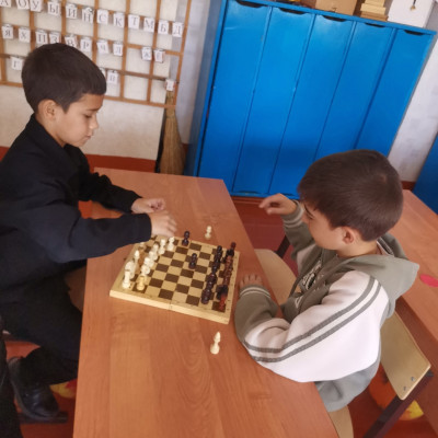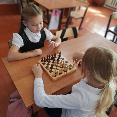 На внеурочной деятельности "Шахматы" ребята отрабатывают умения игры. Стараются поделиться знаниями с младшими ребятами. Учитель Кунах И.В.
