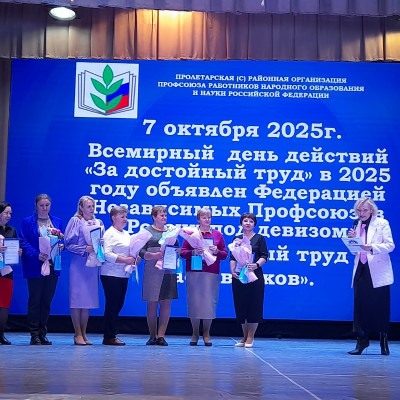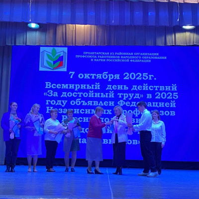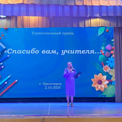 2 октября в г.Пролетарске в рамках Дня работников дошкольного образования и Дня учителя состоялся торжественный приём. С районной сцены тёплые поздравления принимали те, кто связал свою жизнь с достойной профессией – давать знания. Профессиональные достижения, многолетний труд, общественная деятельность отмечались наградами.
