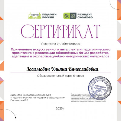 С 21-24 ОКТЯБРЯ 2025 ГОДА ПРОХОДИЛ ОНЛАЙН- ФОРУМ «СОВЕРШЕНСТВОВАНИЕ КОМПЕТЕНЦИЙ ПЕДАГОГА: ИСПОЛЬЗОВАНИЕ ИСКУССТВЕННОГО ИНТЕЛЛЕКТА И ИННОВАЦИОННЫХ ОБРАЗОВАТЕЛЬНЫХ МЕТОДИК В УСЛОВИЯХ ВНЕСЕНИЯ ИЗМЕНЕНИЙ В ФОП И ОБНОВЛЕННЫХ ФГОС»