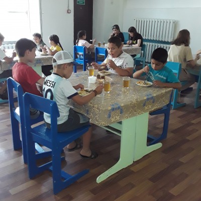 Решению поставленных задач помогали условия, созданные для успешной работы лагеря: медицинская и игровая комнаты, детская спортивная площадка, сельская библиотека и Дом Культуры. Было организовано 2х разовое полноценное питание и «С» витаминизация третьего блюда в школьной столовой. Приготовленные блюда были вкусными и полезными. Ребята дружно благодарили поваров. В первый и в последний день лагерной смены был проведен медосмотр (у детей измерили рост и вес).