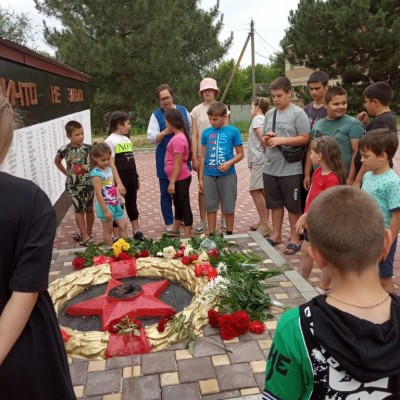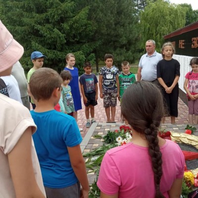 Наш день начался с линейки, на которой ребята почтили память павших героев минутой молчания, вспомнили скорбные годы войны, возложили цветы к памятнику погибшим воинам. Затем с ребятами была проведена беседа "День памяти и скорби", во время которой ребята читали стихи о войне, посмотрели фильм о начале войны и фильм «Наследники победы». Многие дети рассказывали про своих родных - участников Великой Отечественной войны. Ребята пришли к выводу, что нельзя забыть подвиг наших дедов и прадедов, которые воевали за наше светлое будущее. Возложили гирлянду памяти к памятник погибших в Великой Отечественной войне.