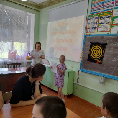 День социального работника – это праздник людей, чья профессиональная деятельность связана с проблемами людей разного социального статуса, возраста, состояния души и здоровья. Поэтому в нашем пришкольном лагере «Фантазеры» прошло небольшое торжественное мероприятие, приуроченное ко Дню социального работника, который ежегодно отмечается в России 8 июня, начиная с 2000 года на основании Указа президента Российской Федерации. На мероприятие были приглашены представители этой поистине важной и нелегкой профессии. Они приняли теплые поздравления от воспитанников лагеря в честь своего профессионального праздника. Дети прочитали для них стихи и подарили цветы с наилучшими пожеланиями добра, света и тепла, всего того, что социальные работники сами отдают другим людям.