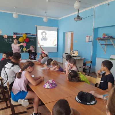 6 июня в пришкольном лагере «Фантазеры» прошли мероприятия, посвящённые 225 — летию со дня рождения великого русского поэта А.С. Пушкина. В день рождения Александра Сергеевича Пушкина отмечается сразу двойной праздник – Пушкинский день и День русского языка. В честь Пушкинского дня России ребята совершили увлекательное литературное путешествие "В гостях у Пушкина", которое провели воспитатели отрядов, а также прошли общелагерные мероприятия: викторина и интерактивная игра «По сказкам Пушкина», дети вспомнили интересные факты из биографии поэта, сказки, читали стихи, отвечали на вопросы, отгадывали загадки.