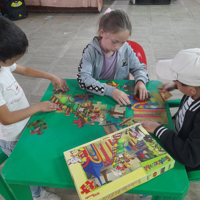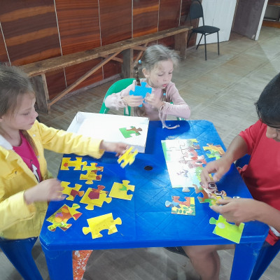 Развлекательная программа сменилась подвижными играми на свежем воздухе и походом в ДК, где ребята проявили свои музыкальные способности.