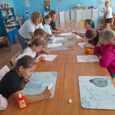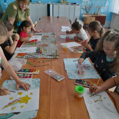 После сытного обеда начала свою работу "Творческая мастерская", где ребята учились рисовать в нетрадиционных техниках и сделали поделки из бросового материала. Началась подготовка к закрытию лагеря: ребята с удовольствием разучивают песни, танцы и стихи.