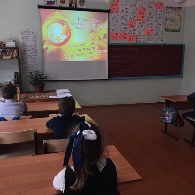 В России 1 октября отмечается День пожилого человека. Это очень светлый и добрый праздник, который очень важен сегодня, т. к. он позволяет привлечь внимание к проблемам пожилых людей, окружить их заботой и любовью. В первом классе была проведена беседа на тему: «День добра и уважения». Ребята узнали историю праздника, рассказали о своих бабушках и дедушках, посмотрели мультфильм «Встречайте бабушку». В знак глубокого уважения и внимания к людям старшего поколения учащиеся 1-го класса с удовольствием своими руками сделали «Букет любви и добрых пожеланий» для всех пожилых людей.