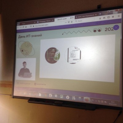 16 октября 2020 г. прошла международная профориентационная акция «День ИТ-знаний - 2020» в формате интерактивного урока-презентации, урока-дискуссии между специалистом ИТ-отрасли и обучающимися 7-9 классов школ субъектов Российской Федерации в режиме онлайн-связи с целью активизации деятельности обучающихся в рамках образовательного процесса, планирования своего профессионального будущего, в том числе связанного с ИТ-сферой, а также развития кадрового потенциала в области цифровой экономики.