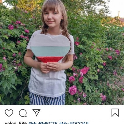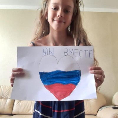«Сердечная благодарность»: Каждый желающий поздравляет страну и всех ее граждан, вырезает из бумаги, вышивает, печатает на принтере сердечки в цветах триколора и фотографируются с ним, затем выкладывают его в соцсети с единым хэштегом #МыРОССИЯ
