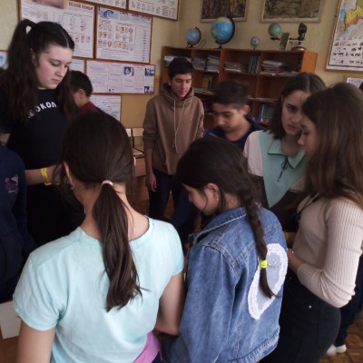 -проведением квеста для трех команд "Зеленых", "Красных", "Желтых". В состав команд входили учащиеся из 5-11 классов.