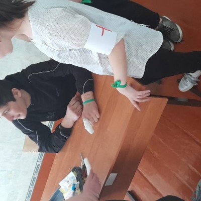 "Станция 6" "Первая помощь". На станции были предложены ребятам теоретические задания по оказанию первой помощи: "Найди пару"- необходимо было распределить лекарства первой помощи и определить, для чего они нужны, задания на определение последовательности оказания первой помощи при кровотечении из носа, при ушибах и порезах. После теоретической части перешли к практической части: необходимо было оказать первую помощь другу, который порезал палец. Ребята с удовольствием побывали в роли врача и не оставили друга в беде.