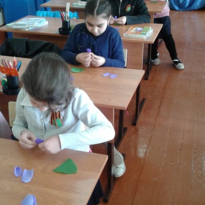 На классном часе сделали «Цветок Победы». Совместно с родителями подготовили проекты «Герои моей семьи», оформили в классе «Окно Победы». Приняли участие в акции «Сад памяти», в её проведении помогли родители. Большое спасибо им за помощь!