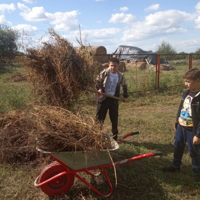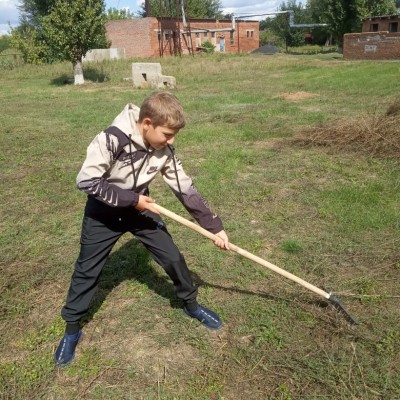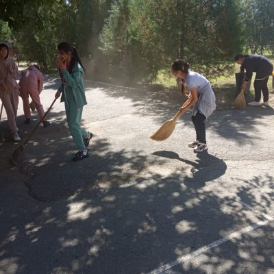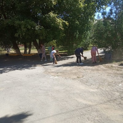 Ребята приняли активное участие в уборке территории от сорняков и мусора совместно с учителем технологии Кадыровым О.М.