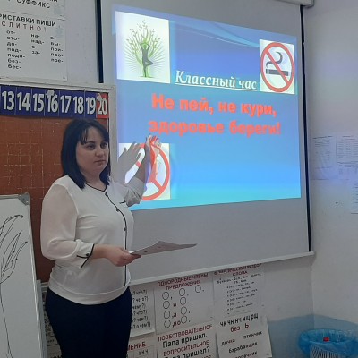 В основе профилактической работы школы по борьбе с курением, алкоголем и употреблением наркотиков лежит систематическое повышение уровня осведомленности детей и подростков о пагубном влиянии вредных привычек на растущий организм. В первую очередь, важно не запугивать детей, а показывать преимущества здорового образа жизни. В рамках такой работы в 4 классе прошел классный час на тему «Не пей, не кури, здоровье береги!» Учащиеся определили понятие «привычка» и на какие две группы они делятся. В каждой группе назвали полезные и вредные привычки. Подробнее остановились на курении и употреблении спиртных напитков. Учитель представила ребятам краткую историю о появлении табака и алкоголя, а также рассказала, какие наказания применялись в различных странах к людям, зависимым от курения и алкоголя. Далее был проведен тренинг «Диалог» (работа в парах). Ребята с помощью разыгрывания определенных ситуаций, отказывали на предложения попробовать что-либо запретное. И в закрепление материала учащиеся создали «Дерево здоровья», на которое прикрепили листики только с полезными занятиями и привычками, а вредные привычки выбросили в коробку с мусором. Кл.руководитель: Памбах О.Ю.