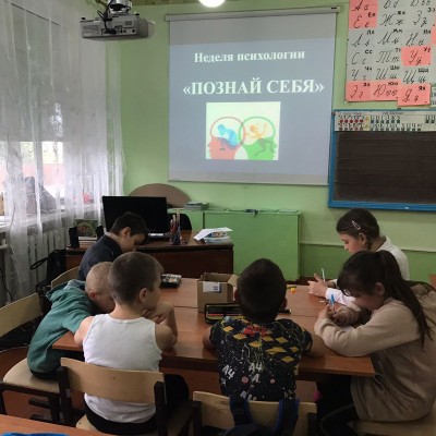 Неделя психологии в школе-просветительско-профилактическое мероприятие, целью которого является развитие творческого потенциала детей, выработка доброжелательного отношения друг к другу, сплочение коллектива, осознание детьми ценности собственных успехов. Во 2-ом классе был проведён круглый стол на тему «Познай себя». В самом начале занятия ребята посмотрели психологический мультфильм «Маска счастья», в котором показана жизнь многих людей, которым приходится каждый день надевать маску, чтобы со стороны казаться счастливым человеком. Далее упражнение «Я лучше всех умею», где каждый из учащихся поделился своими лучшими талантами ,на свой взгляд. Для развития умения осознавать и формулировать свои проблемы, проведено релаксационное упражнение «Коробка переживаний», в эту коробку ребята собрали все свои неприятности, обиды и огорчения. Затем было проведено упражнение «Волшебный круг» с целью создания в группе благоприятного микроклимата. В конце занятия учащиеся выразили свои эмоции и настроение через рисунок, поделились своими впечатлениями.