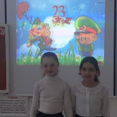 23 февраля — День защитника Отечества, день настоящих мужчин. Ведь каждый мужчина, будь он морским офицером или программистом, ученым или фермером, студентом или школьником - защитник своего Отечества, своей семьи. В рамках тематической недели по военно-патриотическому воспитанию в 4 классе был проведен ряд мероприятий, посвященных Дню защитника Отечества. Вначале девочки поздравили своих мальчиков-одноклассников с наступающим праздником, а после поздравлений все учащиеся поучаствовали в конкурсной программе («Наш солдат умом богат», «Быстрее и сильнее», «Хорошая память», «Закодированное слово» и др.) Особенно ребятам понравилась викторина «Буду военным», в ходе которой они проверили свои знания на военную тематику. В конце дня нарисовали рисунки на тему «С 23 февраля!» Кл. руководитель: Памбах О.Ю.