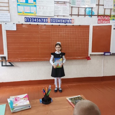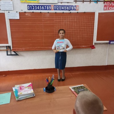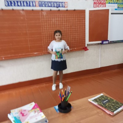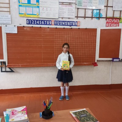 Израилова Марият, учащаяся 4 класса, в рамках участия в флешмобе #ЧитайСоМНОЙ одноклассникам принесла почитать свою любимую книгу, рассказав несколько увлекательных отрывков из книги Марият, проявила у ребят заинтересованность, а яркие и красочные иллюстрации привлекли внимание даже мальчишек которые очень редко читают книги.