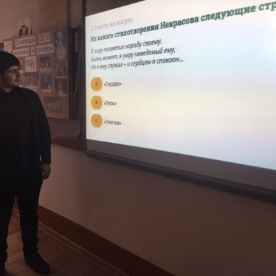 и гражданина. В нашей школе учащиеся тоже вспоминали имя великого поэта, целый ряд мероприятий был проведен учителями русского языка и литературы. Учащиеся 8 класса на внеурочном занятии приняли участие в Некрасовских чтениях «Читаем вместе произведения Некрасова». Ребята читали поэму «Мороз – красный нос», стихотворение «Железная дорога», а затем ответили на вопросы онлайн – теста по произведениям Н. А. Некрасова. А учащиеся 10-11 классов отправились в виртуальное путешествие по некрасовским местам и приняли участие в видеоигре по литературе «Жизнь и творчество Н.А. Некрасова». Эта игра помогла ребятам увидеть, что самые насущные проблемы ставит Некрасов в своих произведениях через образы героев, их многоголосье, представляя реальное через фантастическое, любуясь родной природой и красивым талантливым народом-созидателем.