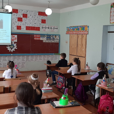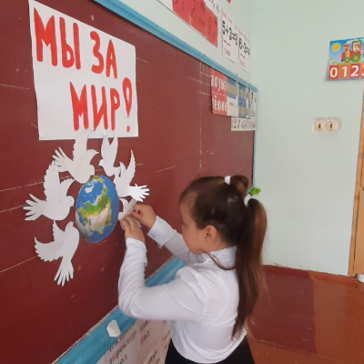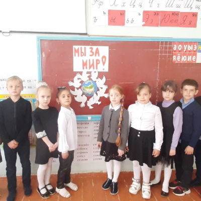 9 мая — День Победы — святой для каждого из нас праздник и мы, сегодняшние граждане страны, обязаны передать память о Победе будущим поколениям, воспитывать у детей патриотические чувства: уважение к старшему поколению, чувство гордости за свое Отечество. В 1 классе прошел классный час «9 мая – День Победы», в ходе которого учащиеся узнали о дате начала войны, сколько лет она продолжалась и когда закончилась. Познакомились с Георгиевской ленточкой: что она относится к Ордену Святого Георгия, цвета ленты – черный и оранжевый означают «дым» и «пламя», и являются знаком личной доблести солдата на поле боя. После беседы для закрепления полученных знаний, была проведена небольшая викторина, посвященная Великой Победе. А с помощью отгадывания загадок ребята познакомились с разными войсками и военными специальностями. В заключении ученики выполнили творческую работу: плакат о мире, нарисовали рисунки к 9 мая и оформили выставку.