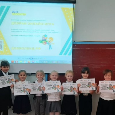С целью вовлечения в добровольческую (волонтерскую) деятельность детей и молодежи Ростовской области, а также профилактики негативных явлений в молодежной среде, обучающиеся 1 класса приняли участие в онлайн-игре на образовательной площадке «Доброленд», посвященной основам добровольческой (волонтерской) деятельности. Все участники получили сертификат юного добровольца.