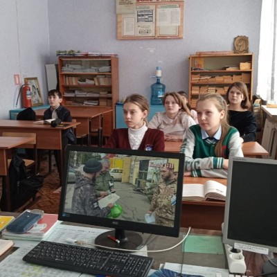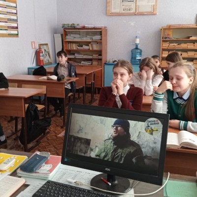 На классном часе в 6 классе организован промотр фильма приуроченный ко Дню Защитника Отечества, посвящен теме поддержки специальной военной операции и участвующих в ней военнослужащих ,в том числе из Пролетарского района. Фильм создан Молодежной казачей телестудией "НАДАЖДА".