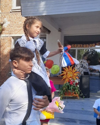 Право вынести флаг РФ было дано Юнармейцам отряда "Патриоты " Вертегелову Кириллу, Непокрытой Валерии, Денисович Алине и ученице 9-го класса Солодовниковой Александре за отличные успехи в учёбе.