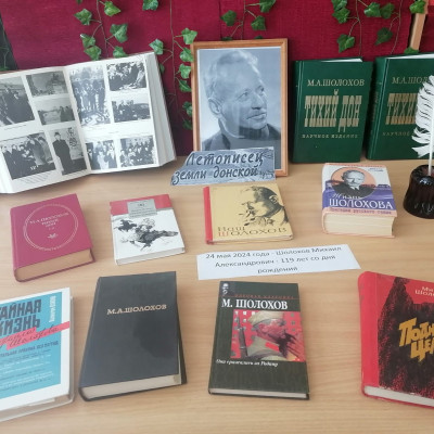 Михаил Шолохов родился 11 (24) мая 1905 года на хуторе Кружилин (ныне Ростовская обл.) в семье служащего торгового предприятия. Советником директора по воспитанию и взаимодействию с детскими общественными объединениями КунахИ.В. совместно с активом обучающихся и библиотекарем (с) библиотеки Гужовой Ю.Ю. организована литературная выставка «Шолоховский уголок», посвященная жизни и творчеству донского писателя. Проведена акция "Школьный кинотеатр - смотрим всем классом. Просмотр фильмов "Нахалёнок", "Судьба человека", "Они сражались за Родину".
