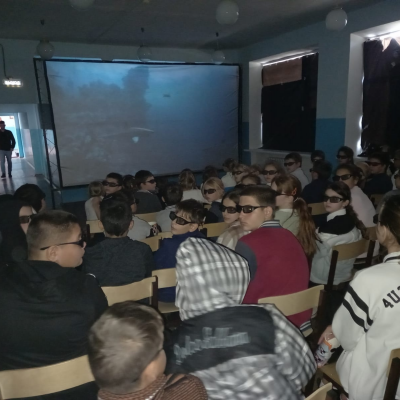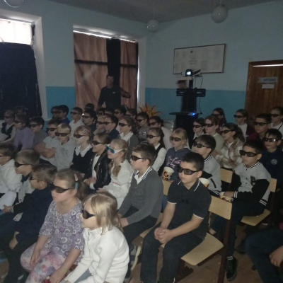 В МБОУ Ковриновская СОШ приезжал в гости 3 Д кинотеатр с фильмом: "Космос, подводные миры и динозавры", где дотронуться до героев было почти реально. Сеанс шёл 40 минут. Ребятам было очень интересно и познавательно.