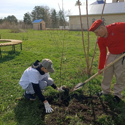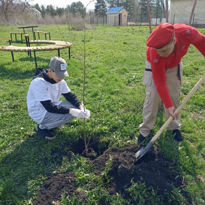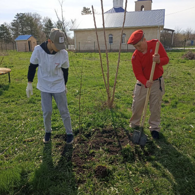 В МБОУ Ковриновская СОШ проведена акция древонасаждения «Твори добро». Совместно с главой Ковринского сельского поселения Кунах Л.П. было принято решение высадку молодых саженцев произвести на территории детской площадке. Активисты Движения Первых, совместно с Юнармейцами активно приняли участие в этой акции, посадив молодые, плодовые деревья в нашем хуторе.