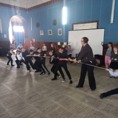 20.02.24г. Учащиеся 1- 4 классов МБОУ Ковриновской СОШ приняли участие в игровой программе " А ну - ка мальчики". Игровая программа была подготовлена работниками ДК.