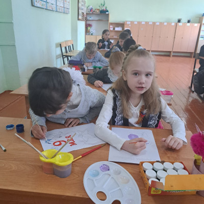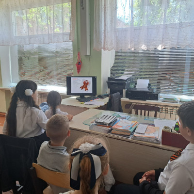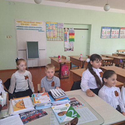 С целью воспитания у детей патриотических чувств, интереса к ее героическому прошлому, уважения к павшим защитникам Родины, детям был проведён урок на тему «День Победы!»