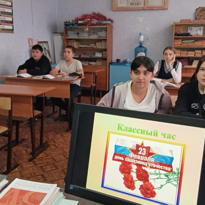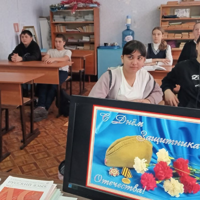 Классный час в 7 классе на тему "На страже Родины стоит солдат", посвящённый Дню Защитника Отечества. Было рассказано об истории этого праздника и о славных сынах Отечества: Александр Невский, Дмитрий Донской, А.В.Суворов, М.И.Кутузов, Г.К.Жуков. А также говорилось про их битвы и подвиги.