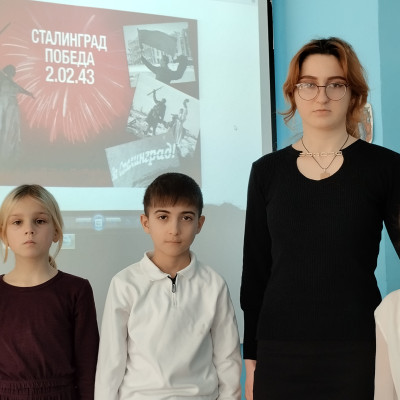 О героях, защищавших город на Волге рассказала студентка педагогического колледжа Амхадова Лариса в презентации « Сталинградская битва». Просмотр кинофильма «Крик тишины» дал возможность ребятам узнать о невыносимых условиях жизни во время блокады Ленинграда, 80-летие снятия которой мы отмечали в нынешнем феврале. Завершился месячник участием третьеклассников в ежегодном конкурсе патриотической песни, где исполнили с большим воодушевление музыкальную композицию «Последний бой».