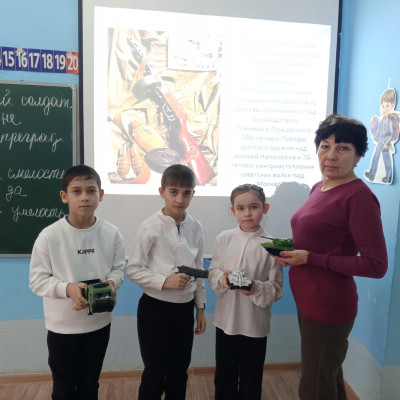 В рамках месячника оборонно – спортивной работы для обучающихся 3 класса классным руководителем проведены следующие мероприятия: Участие в митинге и возложении цветов к мемориалу «Никто не забыт, ничто не забыто», посвященному 81-й годовщине освобождения Пролетарского района и х. Коврино; Проведена интеллектуальная игра «Во славу русского оружия»; проведен классный час «Стоит на страже Родины солдат»; мальчики 3 класса соревновались в силе и ловкости с ребятами из других классов; К празднику 23 февраля ученики 3 класса выполнили рисунки и оформили тематический стенд в классе и рекреации школы. Для военнослужащих, участвующих в СВО родители вместе с ребятами собрали для наших земляков посылки, куда были вложены письма и открытки с добрыми пожеланиями, теплые вещи, сладости.