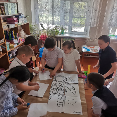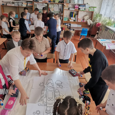 В рамках проекта Орлята России советником директора по воспитанию и взаимодействию с детскими общественными объединениями Кунах И.В. проведено занятие "Мы и космос". Ребята узнали о значении открытий для каждого из нас, поделились своими знаниями. Было предложено собрать пазл, приклеить на лист и раскрасить. В конце занятия ребятам вручены закладки в форме ракеты.
