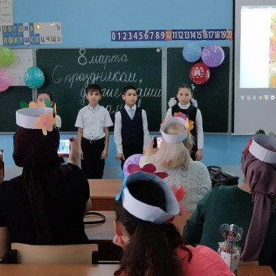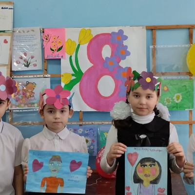 Учащиеся 3 класса подготовили для своих любимых мам небольшое выступление: читали стихи , пели песни, к утреннику оформили тематический стенд , где представили портреты мам, написанные собственной кистью. Каждая мама от своего ребенка получила праздничный "ободок".